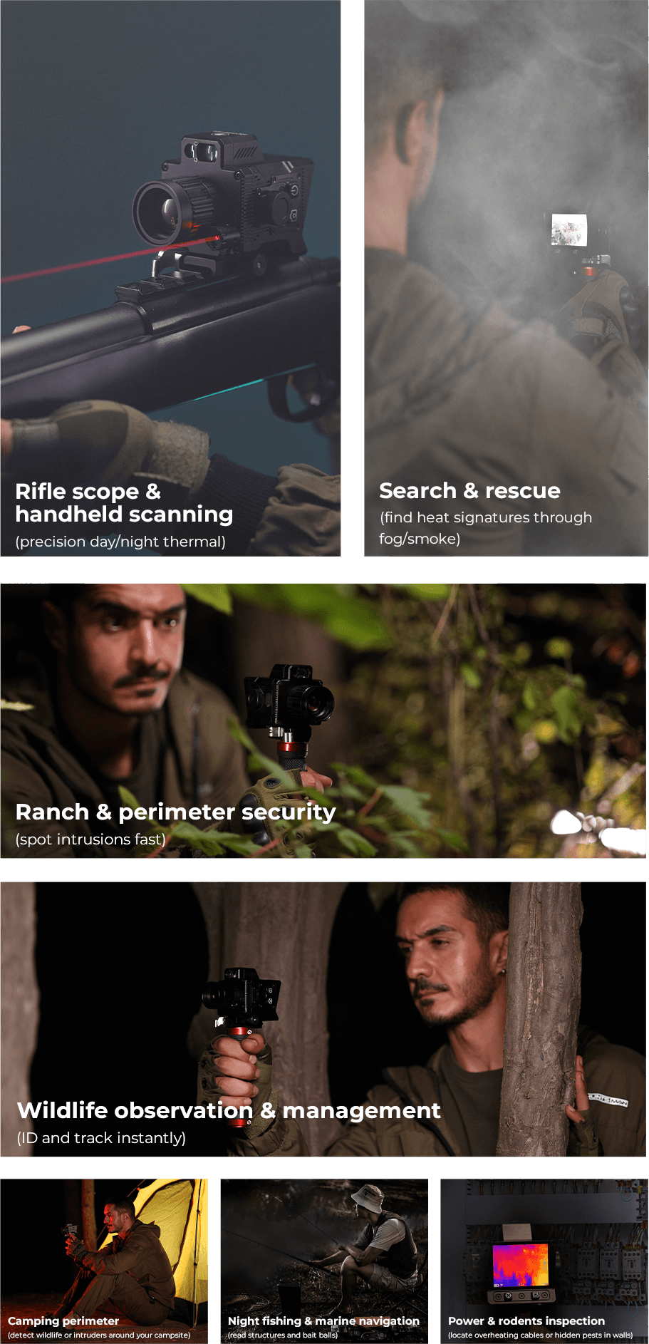 Switch seamlessly between full-color day view and thermal/night vision — one device, all conditions.