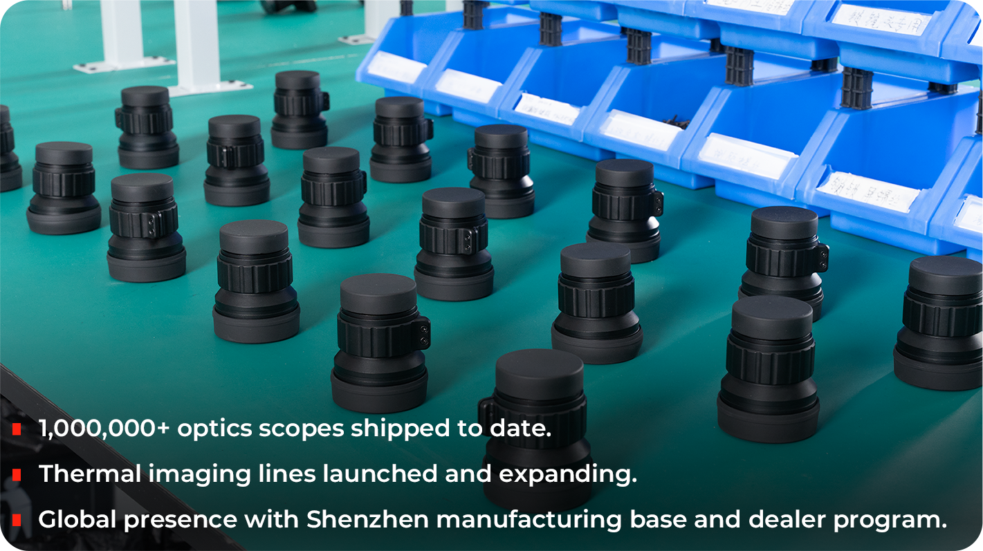 DVX designs next-generation thermal and night-vision systems; DISCOVERYOPT—established in 2009—adds deep optics engineering, factory-level cost/performance discipline, and global scale, with brand lines like XED/ED/LHD and a fast-growing thermal portfolio. Together we turn breakthrough concepts into field-proven products with rigorous QC and service infrastructure.